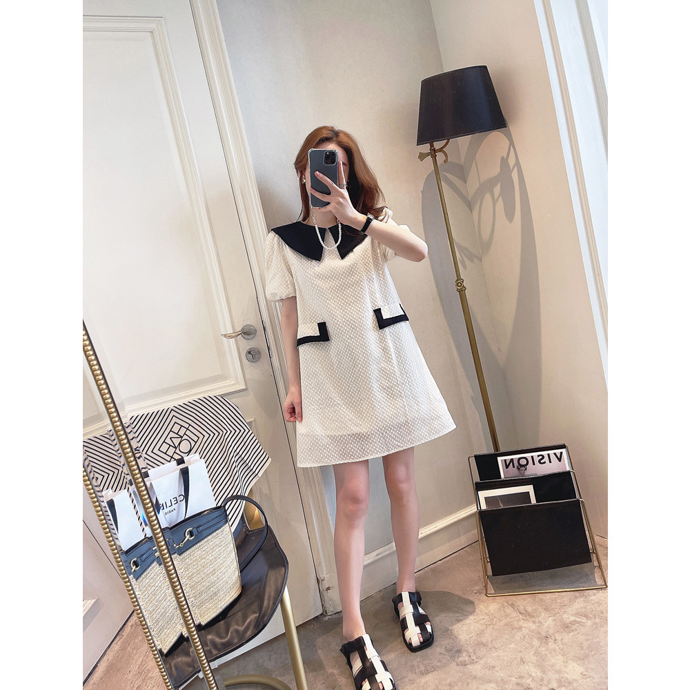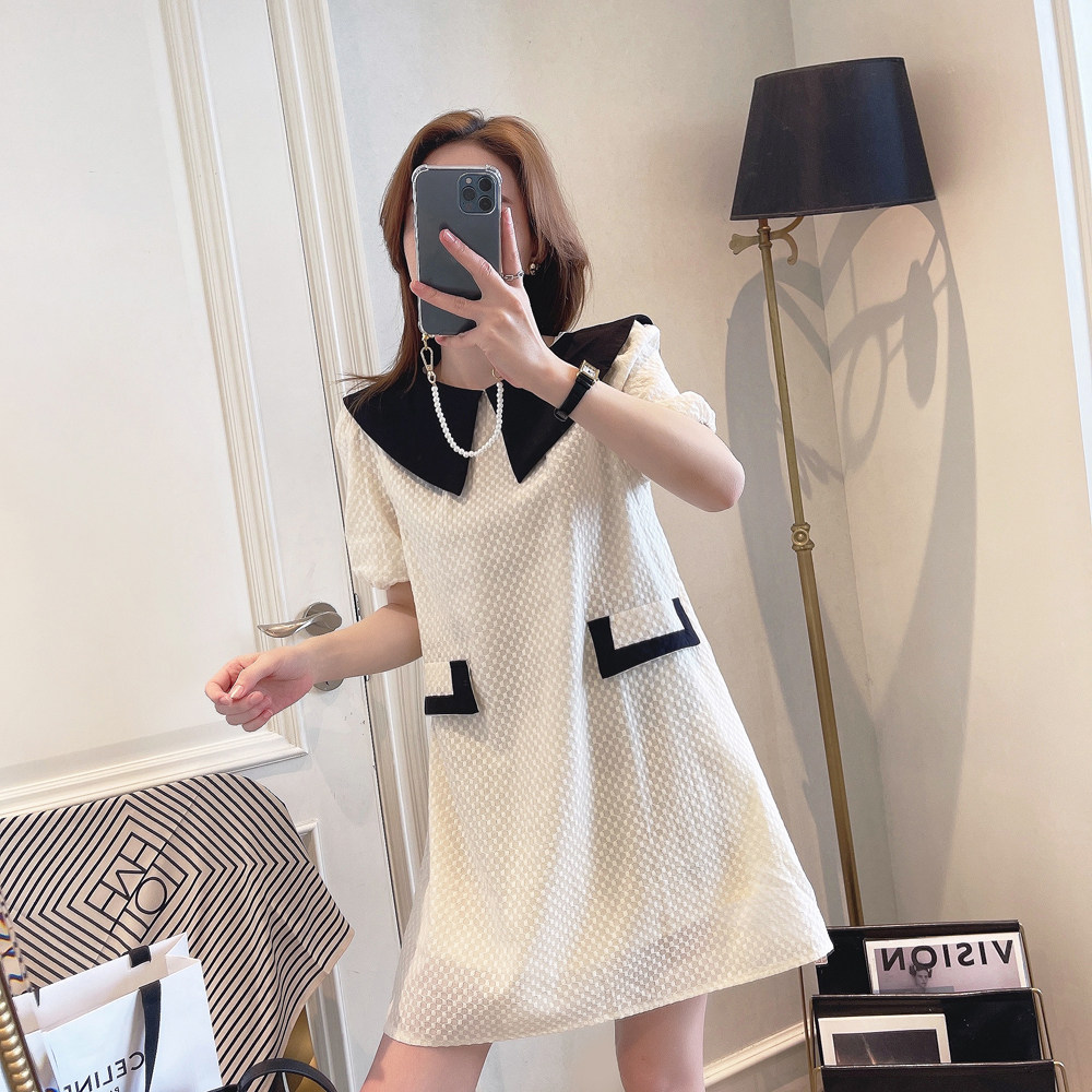 Foreign Dress 2022 Summer New Women's Dress Korean Version Dolls Collar Loose a word sweet and a sleeveless sleeveless dress child
