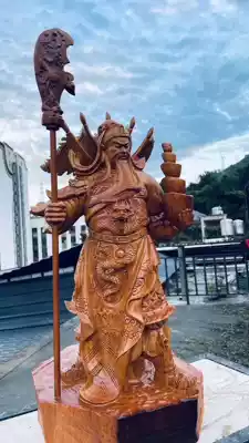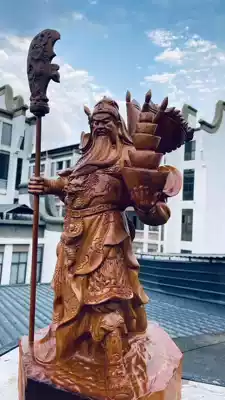 Huali wood carving Guan Gong ornaments Hengwu Caishen Guan Gongzhi Company opened solid wood root carving Guan Erye statue