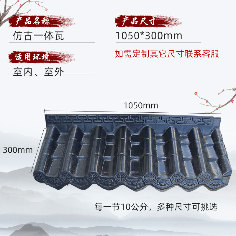 Imitation ancient house eaves integrated tile synthetic resin tile roof thickened decorative plastic simulation ancient built wall glazed tile sheet