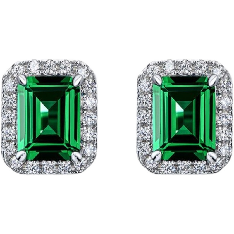 18K white gold ear needle group inlaid with mother green retro rectangular earrings female platinum inlaid square Clarins earrings