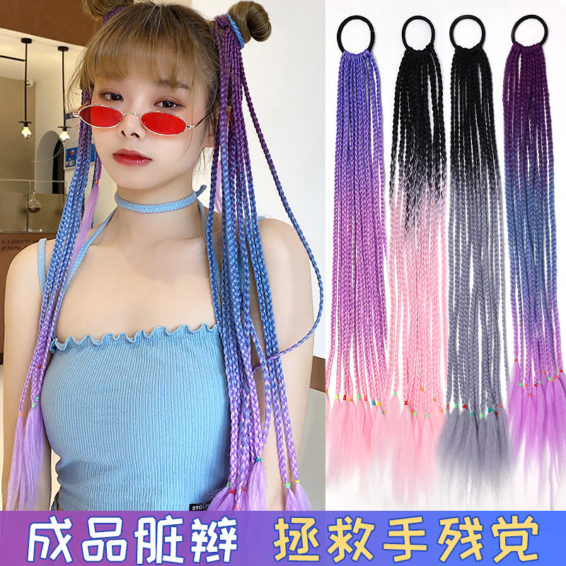 Dirty braid ponytail wig female long hair double ponytail millennium hot girl braid fiber braided hair rope strappy twist long braid - Taobao