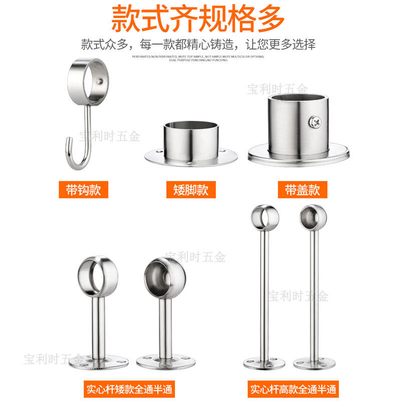 Stainless steel flange balcony clothes drying rod hanging clothes through tube base dressing room shower curtain tube fixed seat clothes rod seat