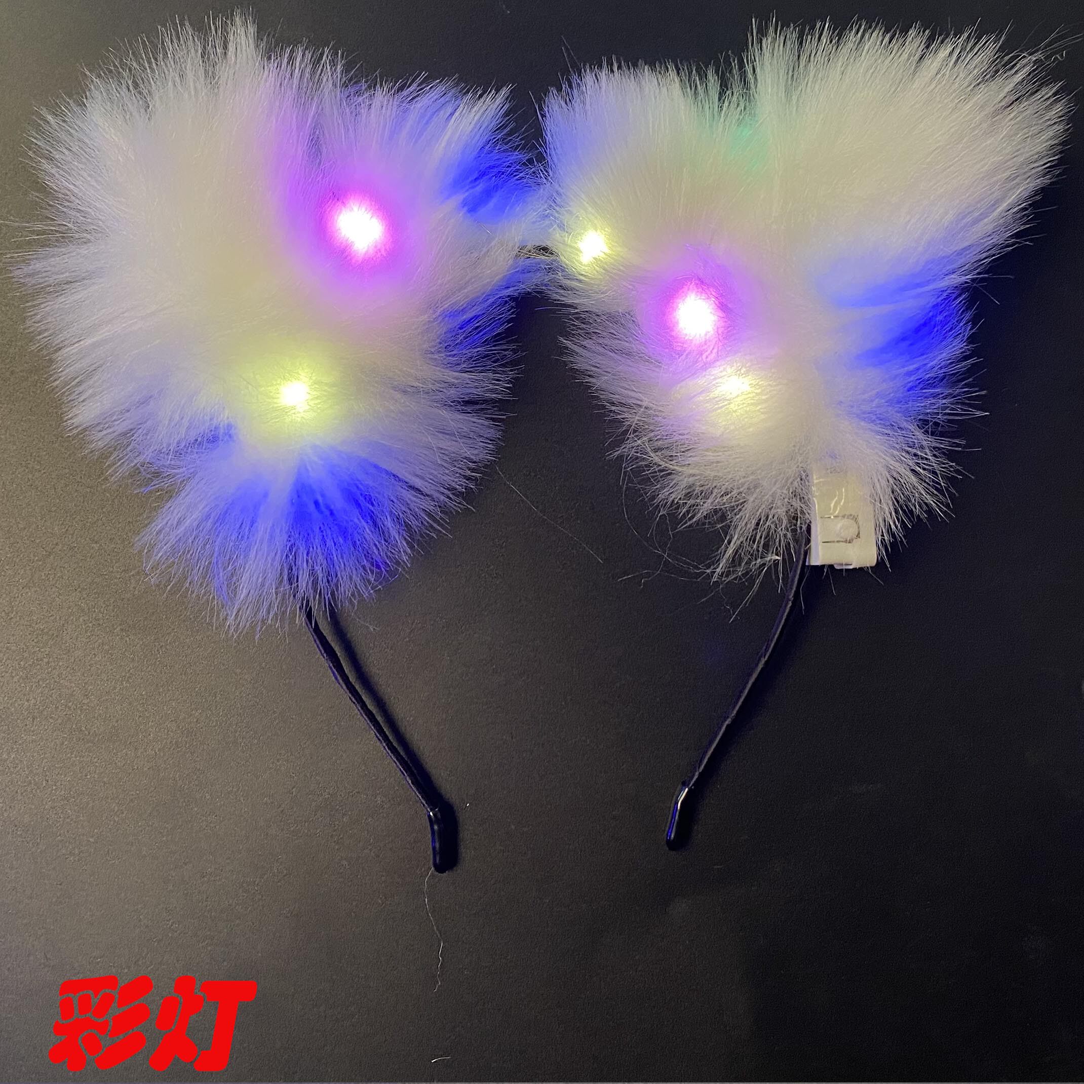 Luminous Fox Fur Ears Mixed Glowing Fox Fur Ears White Colored Lights Glowing Fox Fur Ears White White Light Glow Fox Fur Ears Pink pink Fox Fur ears pink festoons Glow Fox Fur Ears