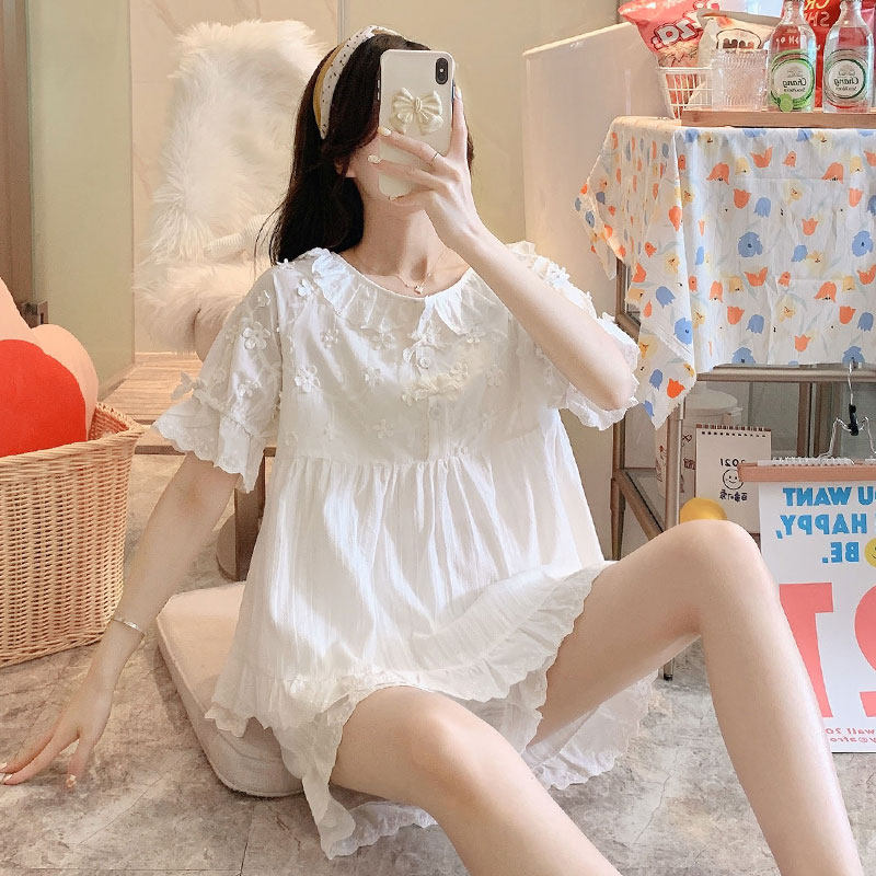 Pajamas Woman Summer Short Sleeve Shorts Pure Cotton Small Flower Sucking Sweat Comfort Home Conserved Palace Windy Princess Fairy Suit