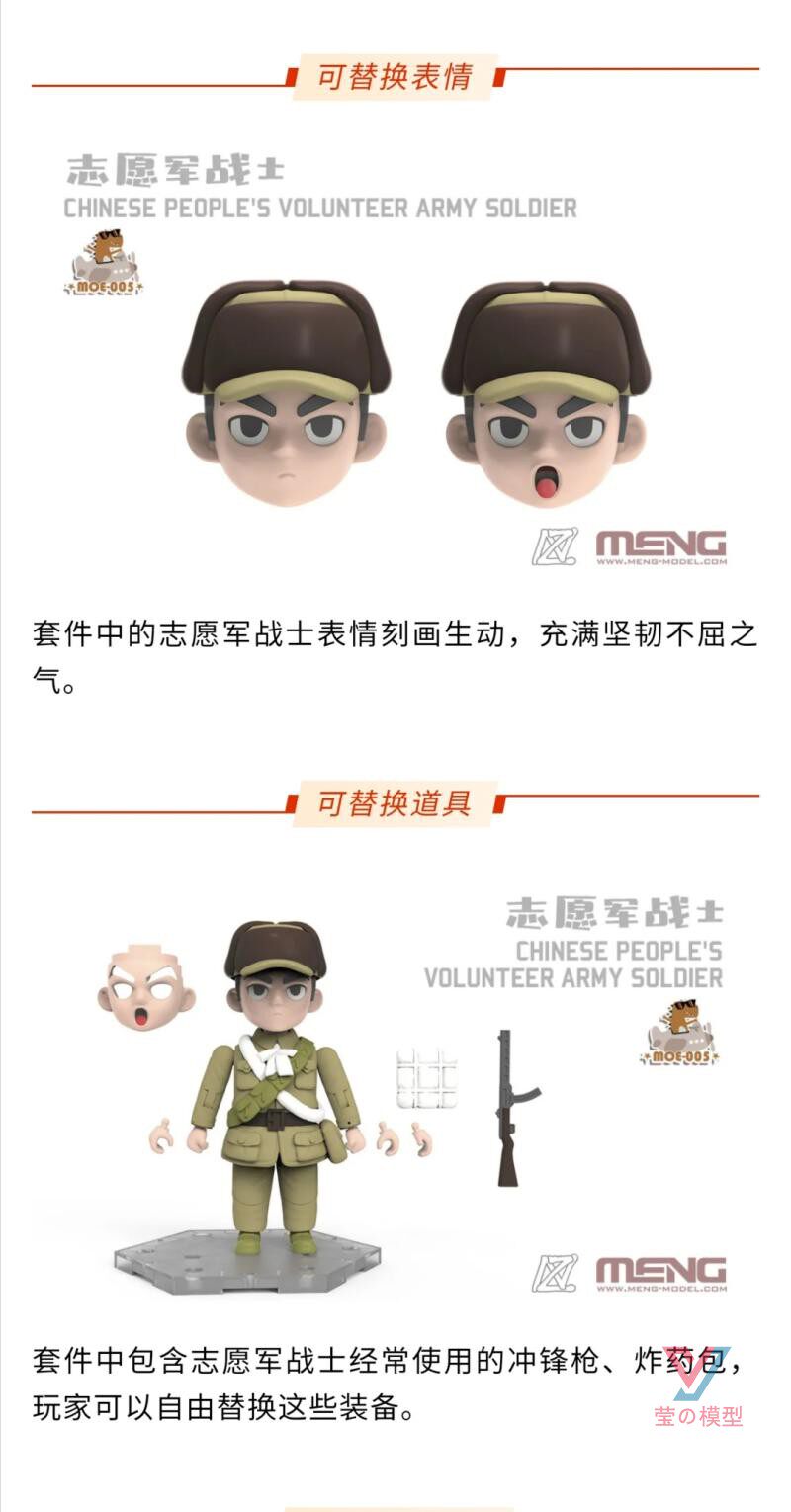 MENG assembled model MOE005 Volunteer Army soldiers glue-free color separation 10 cm high red traditional puzzle