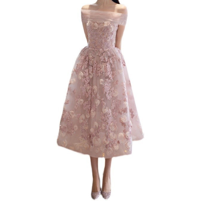 Hepburn style pink short evening dress 2023 new host annual meeting engagement banquet light luxury high-end toast clothing