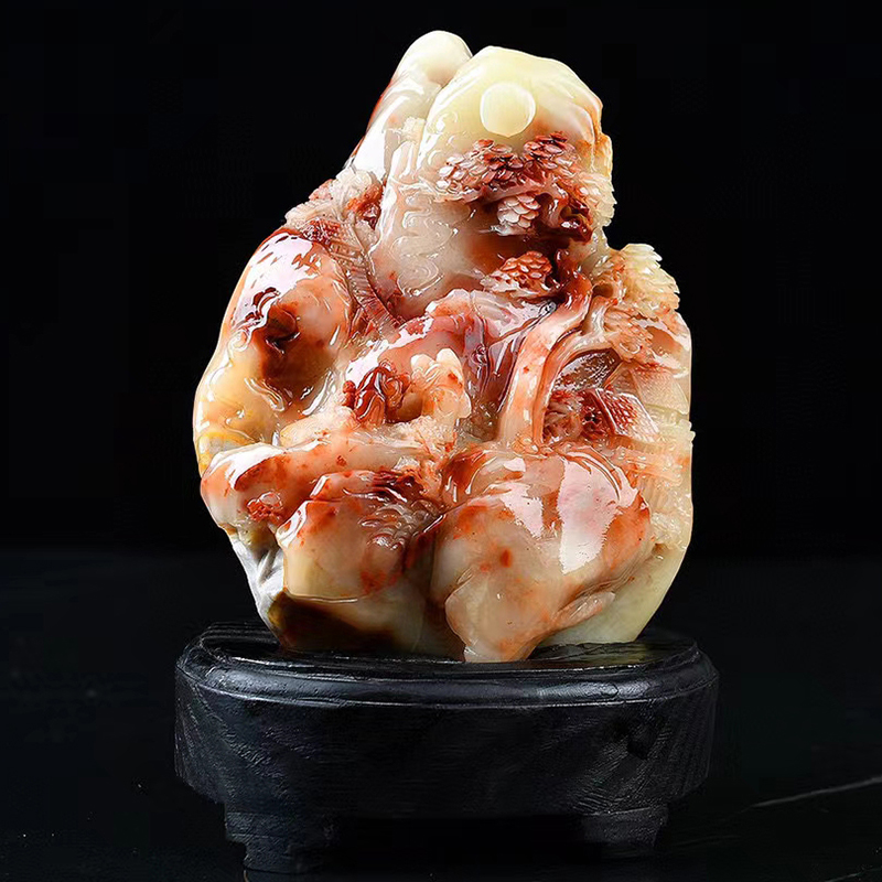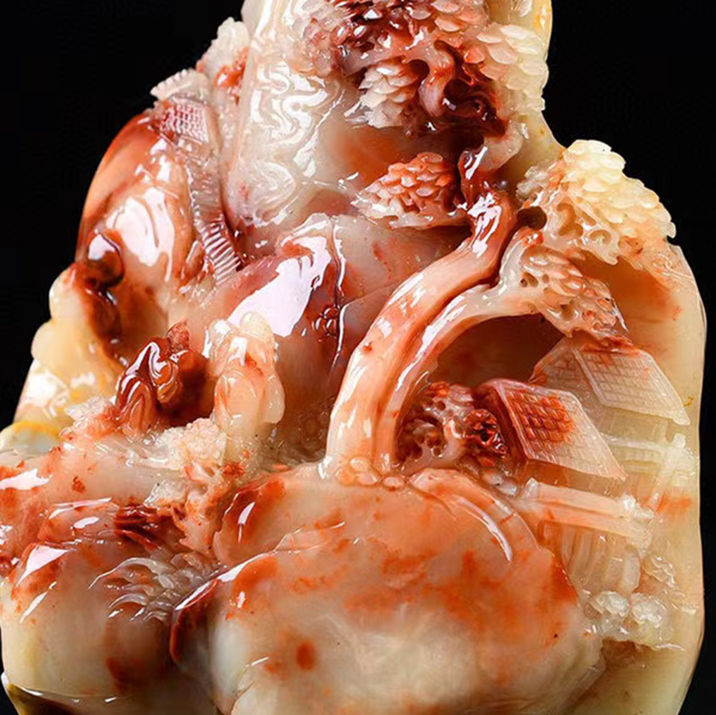Fujian Shoushan Stone Mountain Riman's Family Swing Piece Clubhouse Decoration Furnishing Handicraft Jade Hotel Placement Collection Certificate