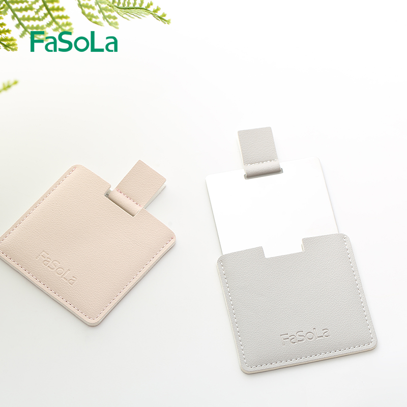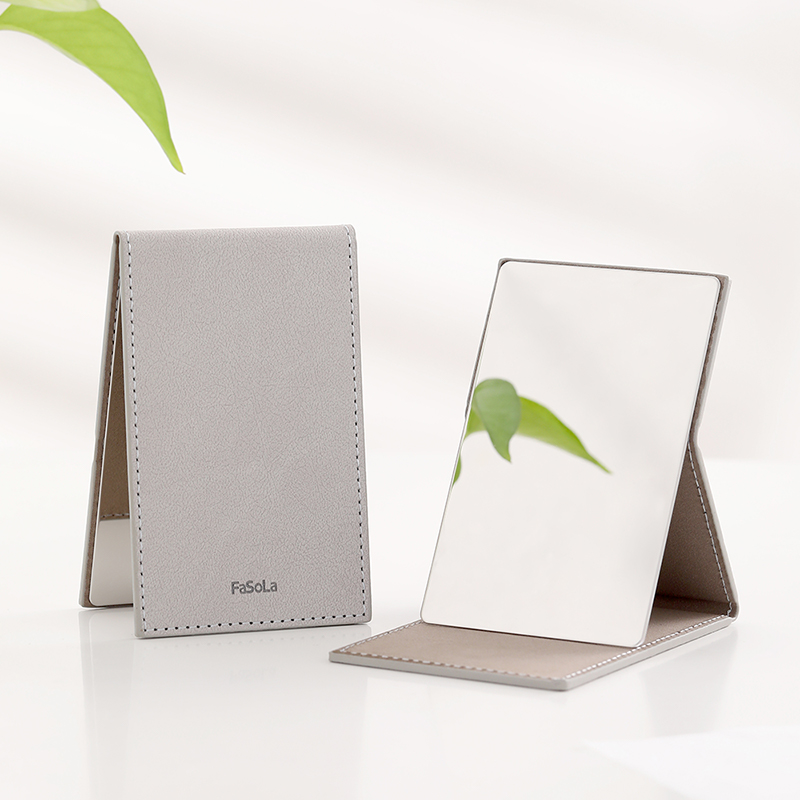 FaSoLa Portable Mirror Portable Makeup Mirror Simple Small Mirror Female Makeup Small Mirror Leather Handheld Dressing Mirror