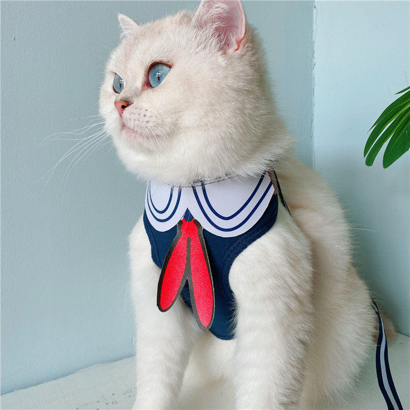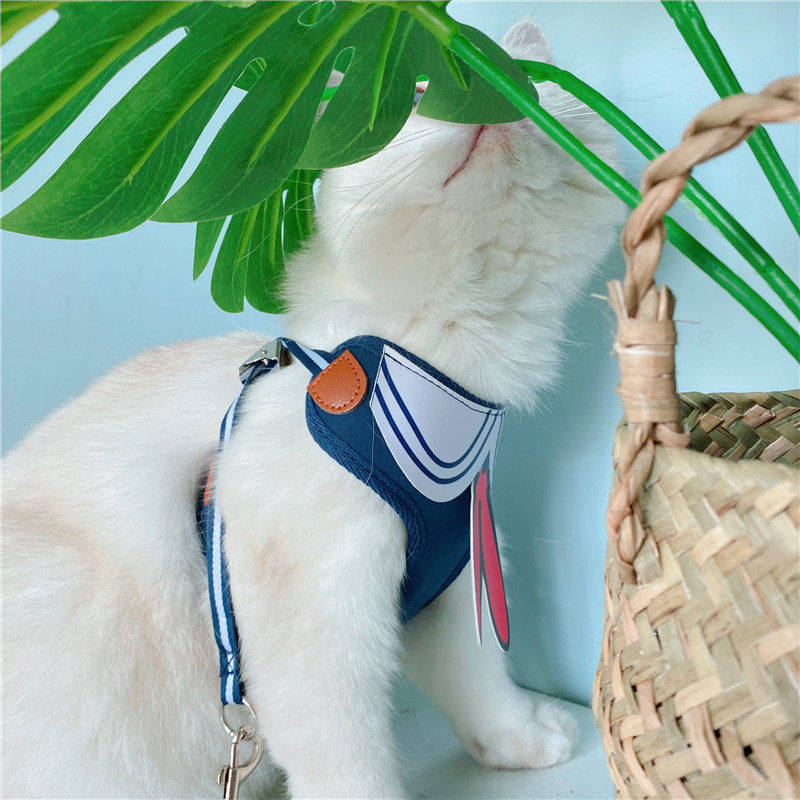 Cute Kindergarten Kitty Traction Rope Sailor's Chest Cuddling Bag Vest Type Water Ice Moon Pet Rope for Cat Litter