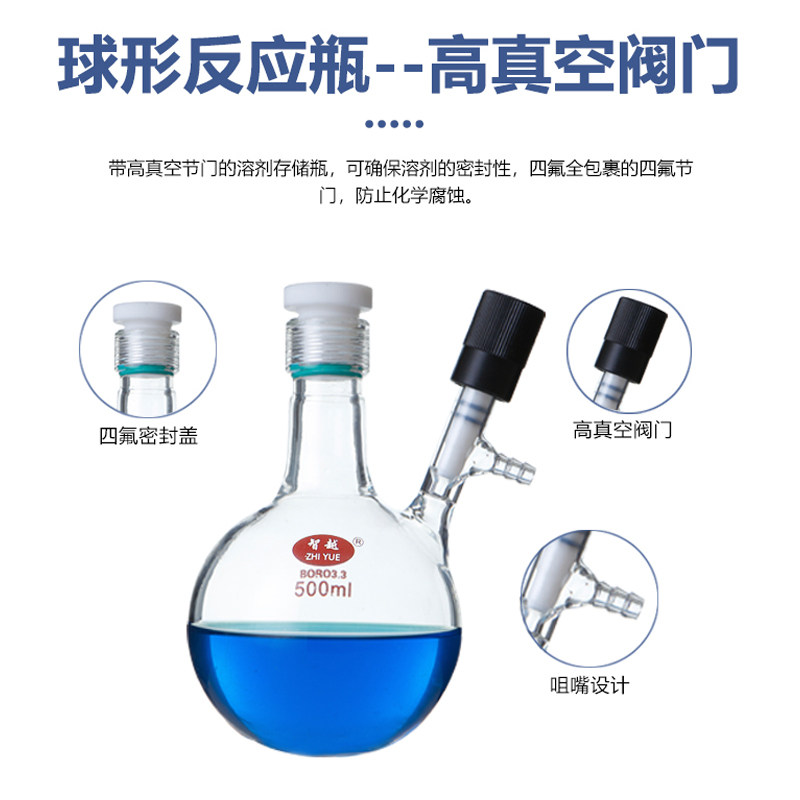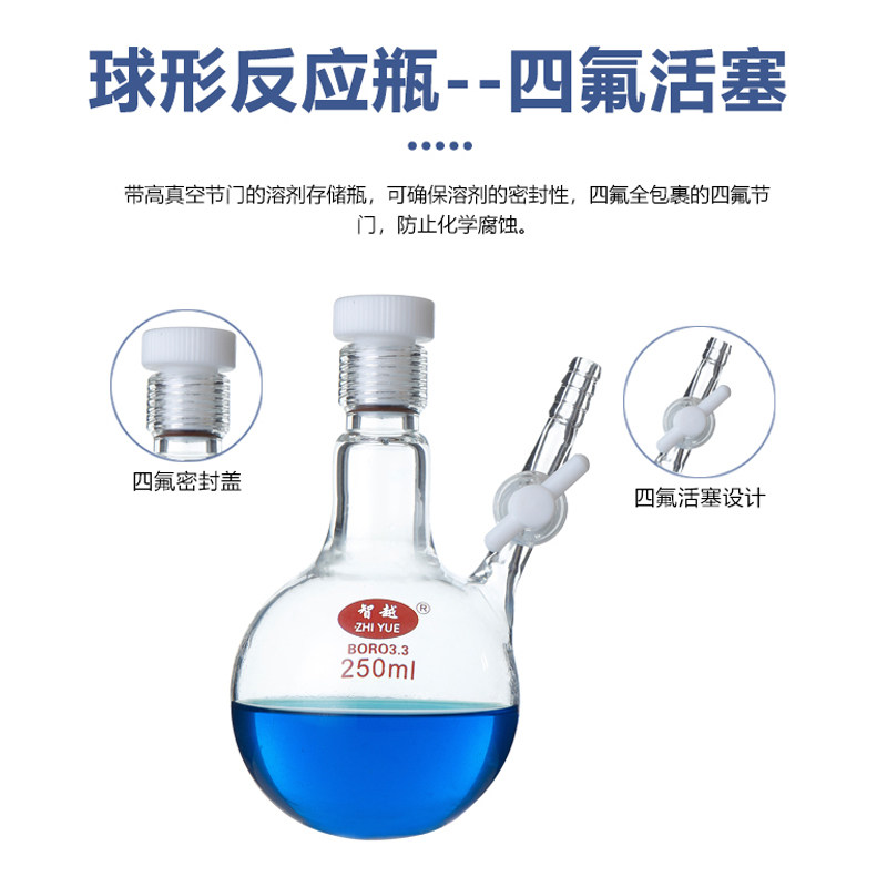 Screw-mouth spherical reaction bottle high vacuum valve spherical opening reactor monolayer glass reaction kettle experimental equipment