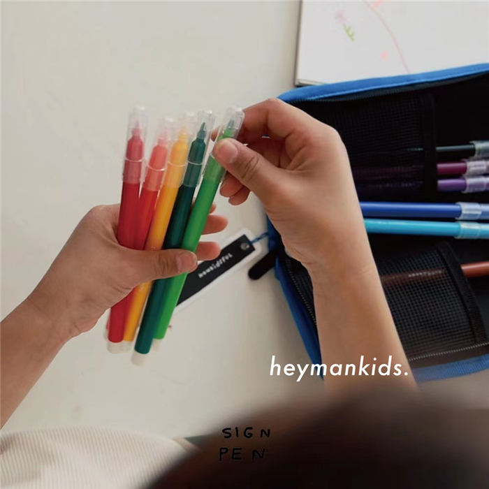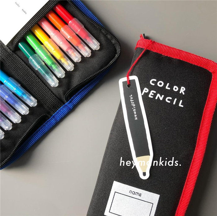 heymankids|Korean children's 12 color pen crayon sticker pencil case set portable and storage