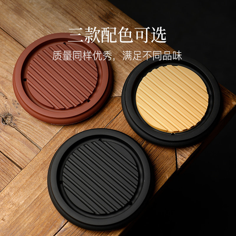 Longshantang coaster silicone waterproof insulation Chinese round tea coaster household pot mat anti-scalding non-slip high temperature resistance