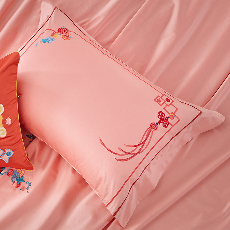 Mengjie Home Textiles is full of blessings 6-piece set 2020 new cotton long-staple cotton embroidered satin quilt cover 14094