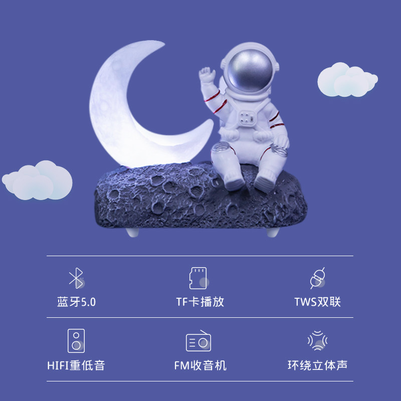 Astronaut Bluetooth Speaker Computer Speaker Home Subwoofer 2022 New Creative Desktop Mini Mini Cartridge U Disk Wireless Night Light Boyfriend Birthday Gift Boy