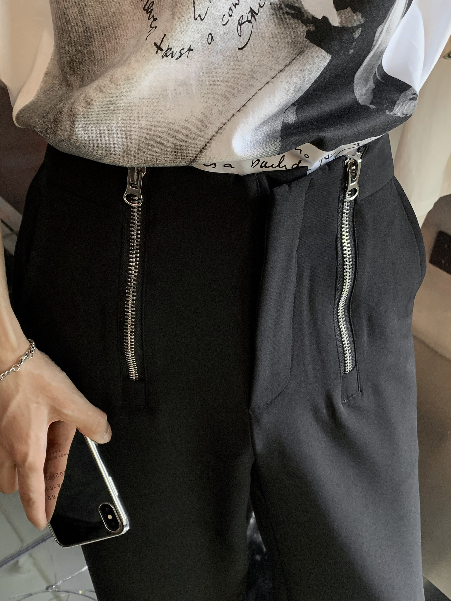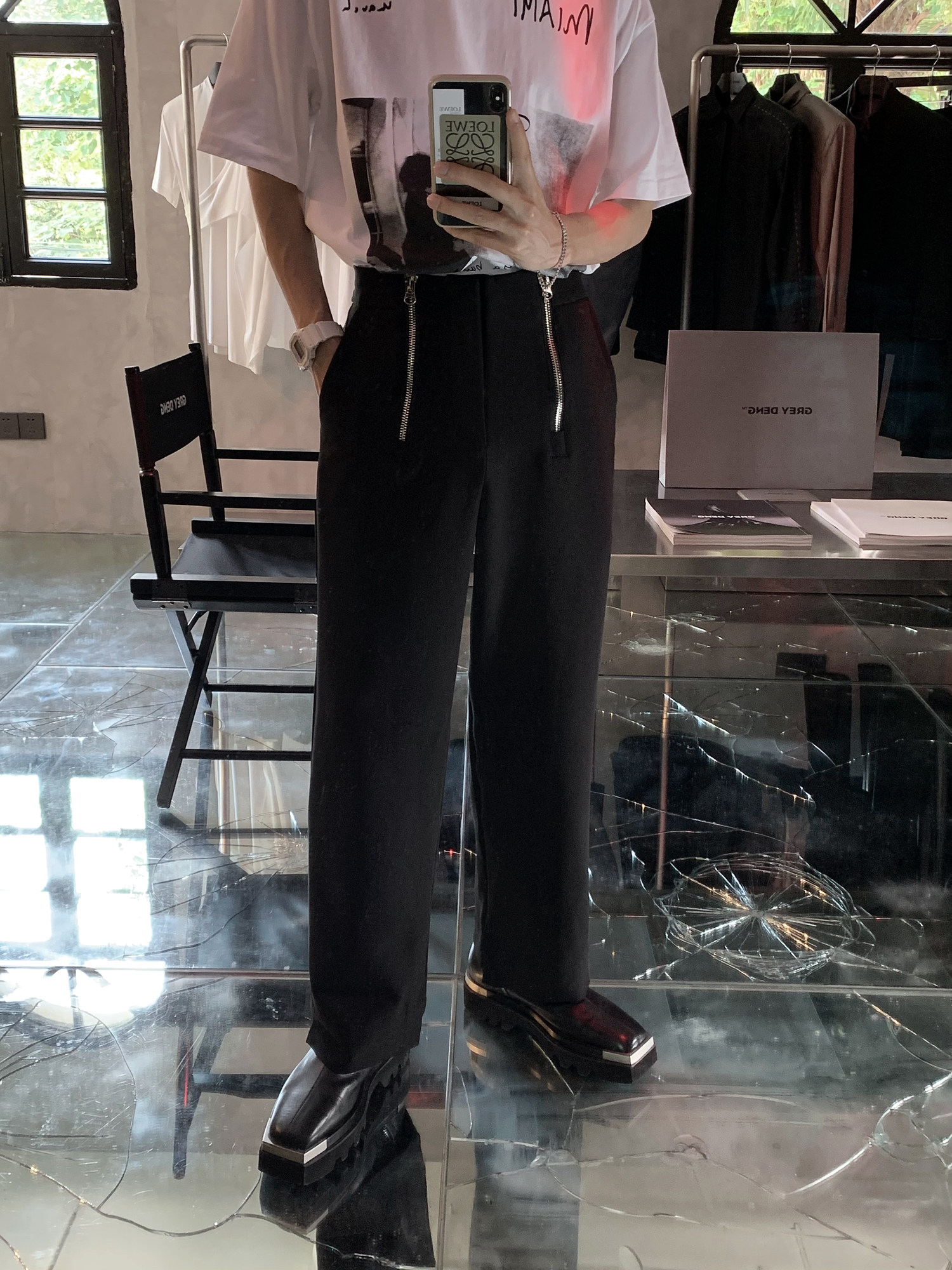 HOZI 2022 new waist laced designer pituality with small crowding trendy black western dress pants for men long pants