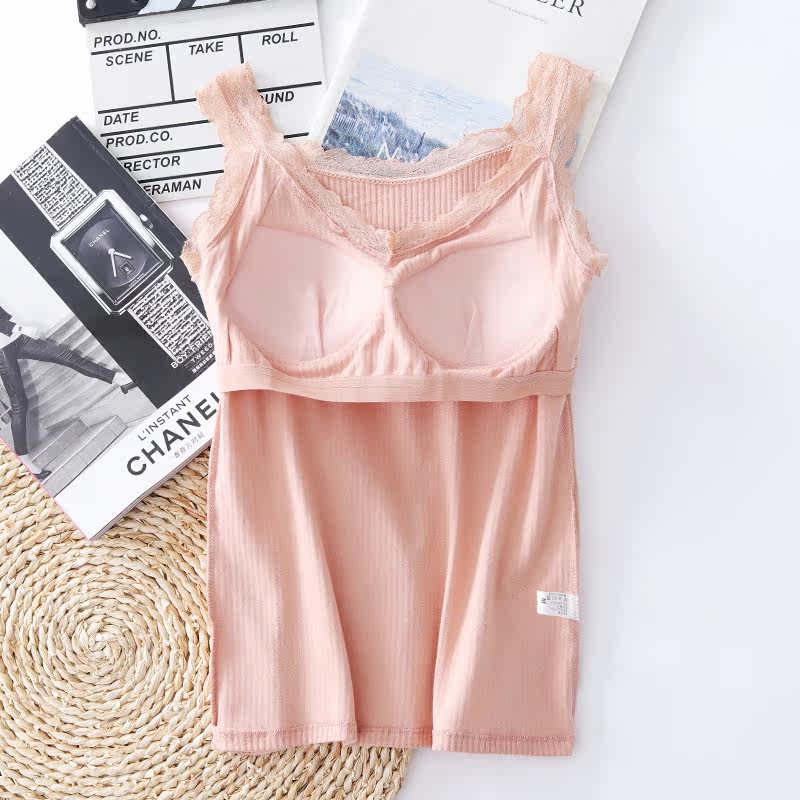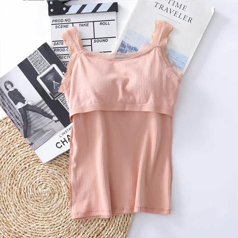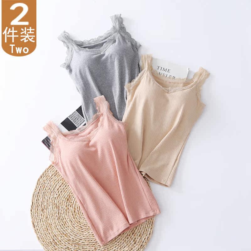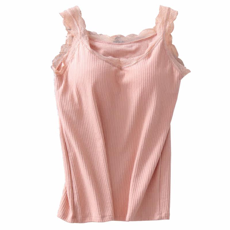 2021 new cotton ladies vest with chest pad without wearing bra straps one-piece sexy lace bottoming outer wear