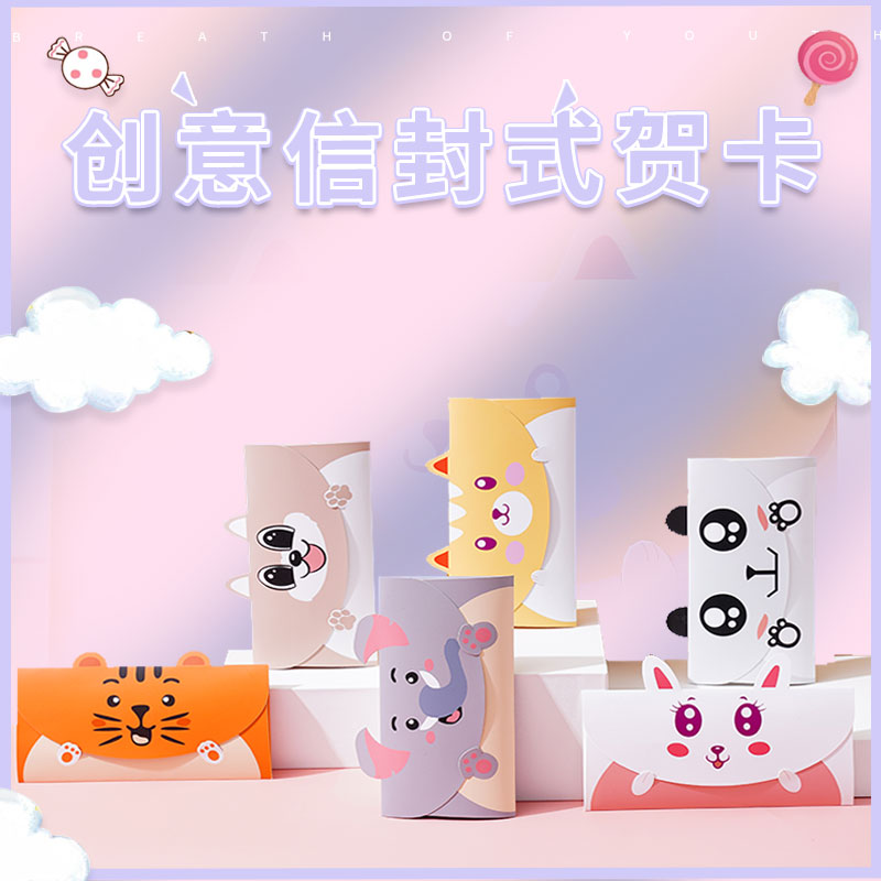 Creative envelope greeting cards - 5 little tigers Creative envelope greeting cards - 5 little rabbits Creative envelope greeting cards - 5 kittens Creative envelope greeting cards - 5 little elephants
