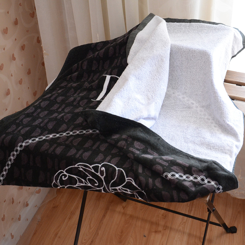 Men's black personality 140*70vm pure cotton bath towel large towel soft absorbent home fitness swimming