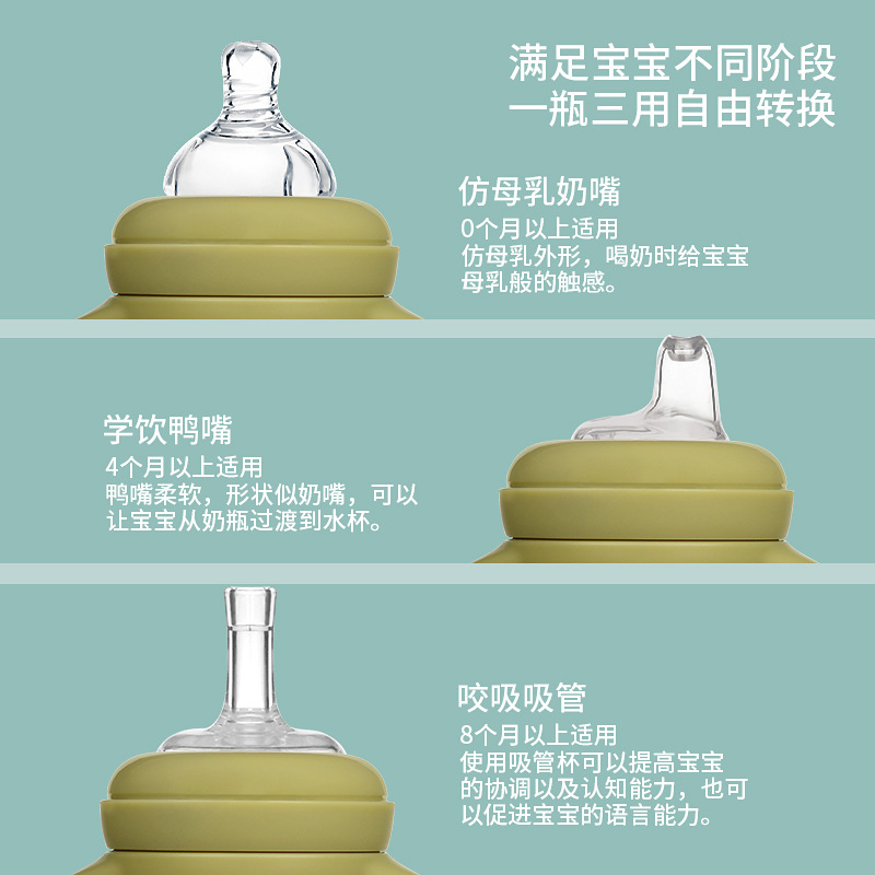 Wide-calibre milk bottle PPSU baby weaning silicone anti-flatulently resistant to fall one bottle of three used child cartoon for milk water bottle