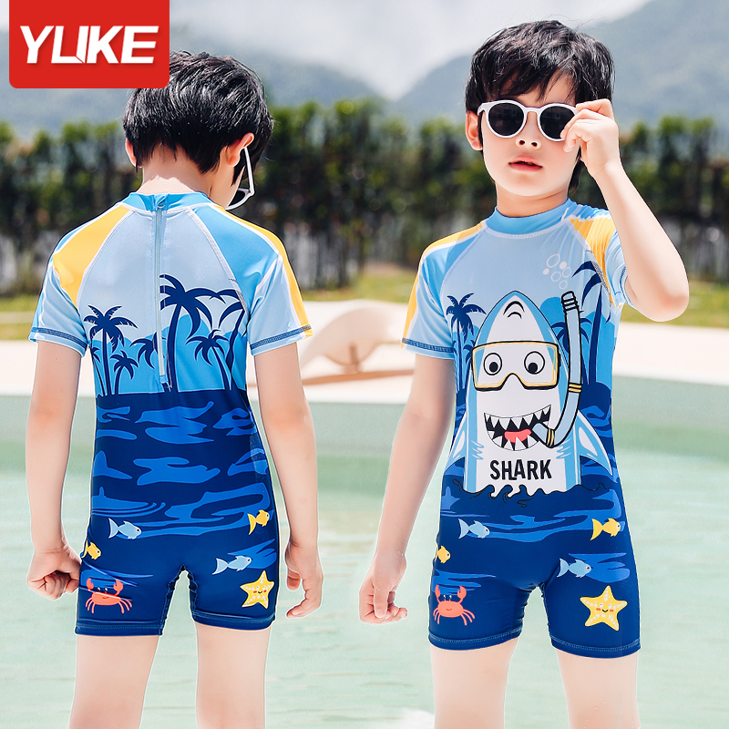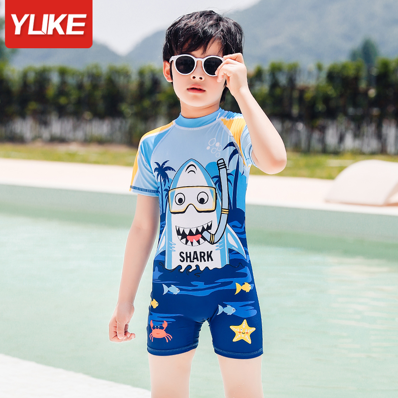 Children's swimsuit boys middle and large children's one-piece swimsuit summer 2021 new children's baby sunscreen swimsuit set