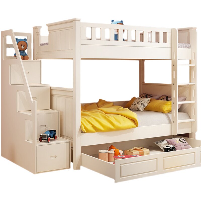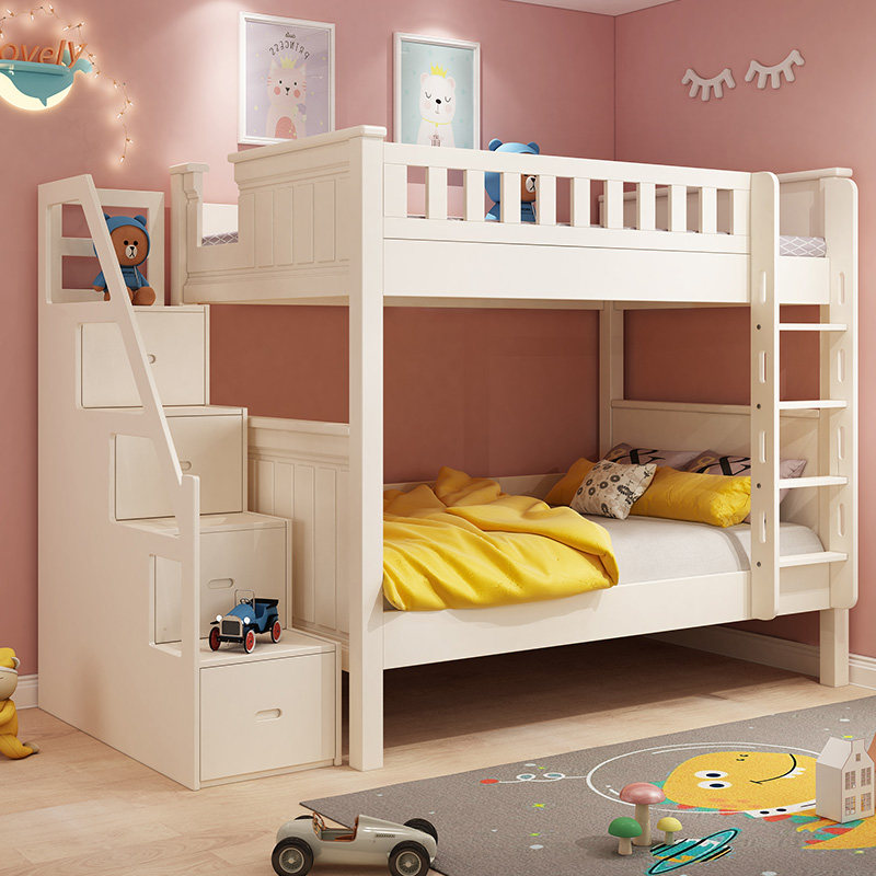 Adult children up and down the same wide solid wood bed with double bed and low bed parallel primary and secondary American small family type combined bed
