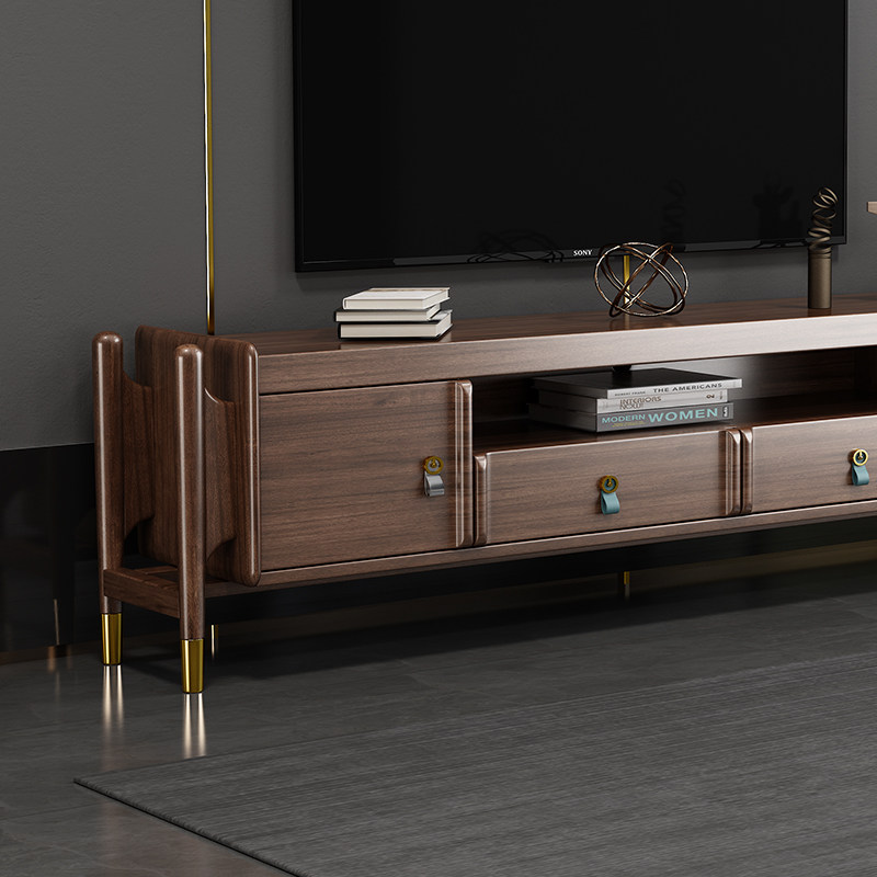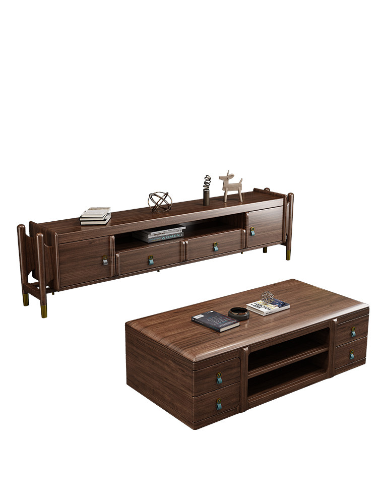 New Chinese solid wood TV cabinet wine cabinet walnut furniture living room light luxury coffee table high and low cabinet combination storage cabinet