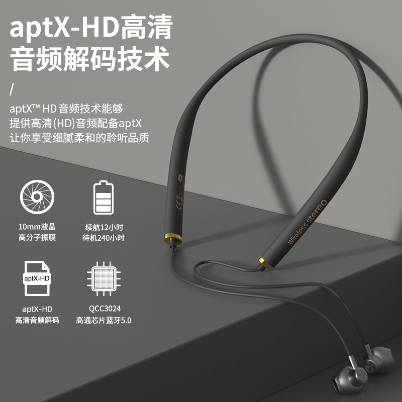 Bluetooth headphone hanging neck style 2021 New APTX Qualcomm applies Huawei Apple oppo Xiaomi Half-in-ear style Neck Hanging Magnetic Attraction for men and women Sports Type Running extra-long sequel high-end