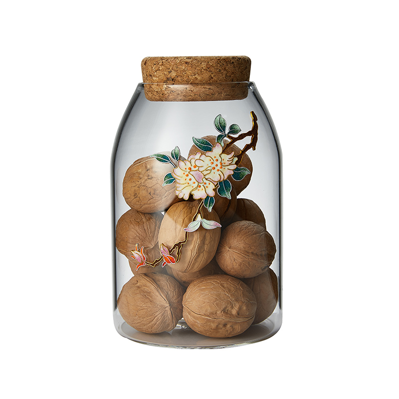 Longshantang tea canister Chinese empty can glass with cover moisture-proof heat insulation cloisonne storage tank storage tank miscellaneous grain tank