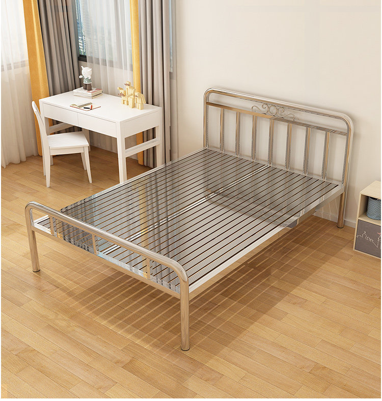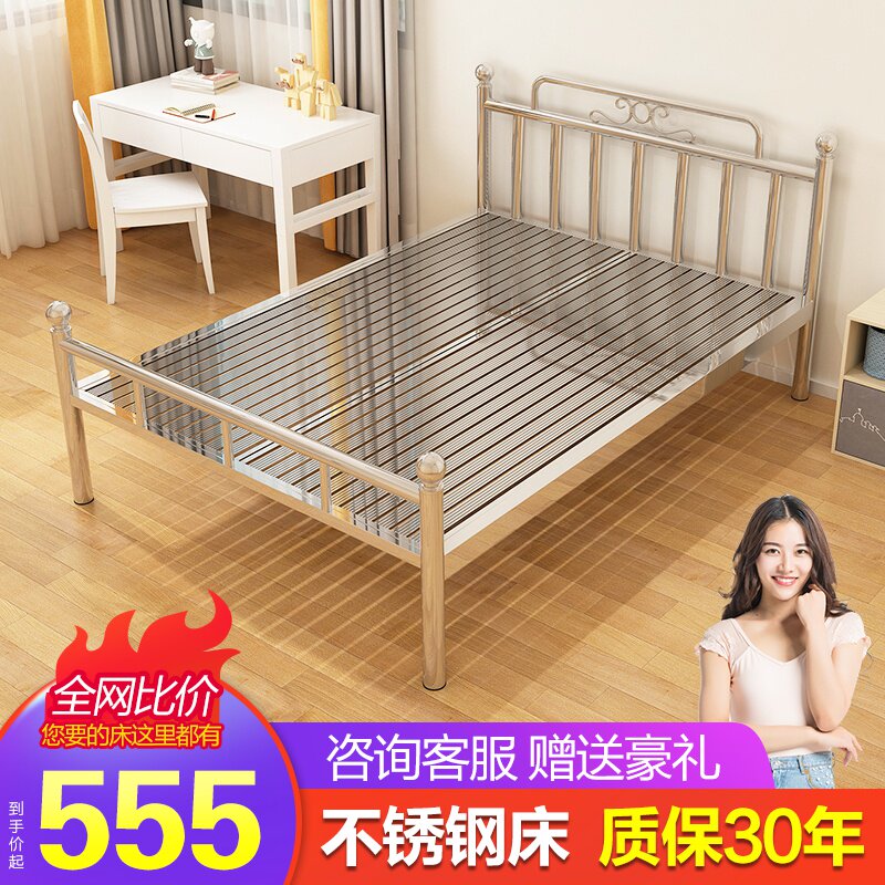 Stainless steel bed 1 5 meters 1 8 meters Modern simple single double bed 304 stainless steel rental room apartment iron bed frame