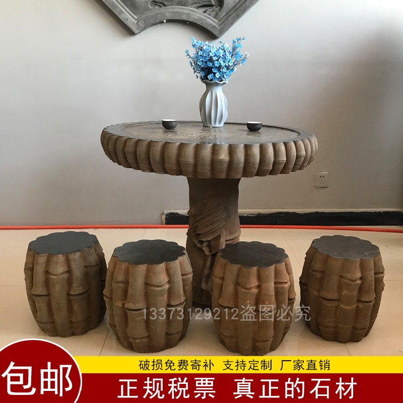 Stone Table Tea Table Stone Bench Patio Courtyard Garden Indoor Imitation Ancient Green Stone Tea Table Stone Sculpture Pendulum Pieces Natural Outdoor Stone Table