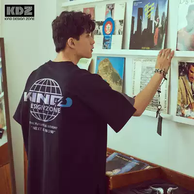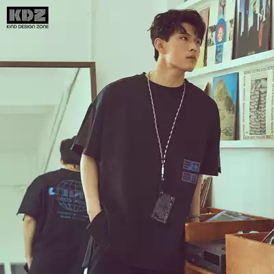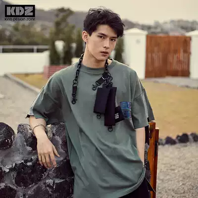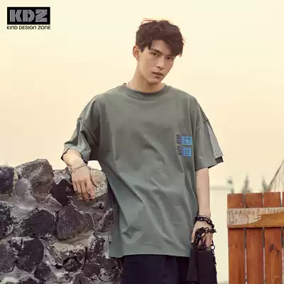 KDZ trendy fantasy print T-shirt short sleeve men 2021 summer new heavy cotton cotton splicing sleeve large version loose T-shirt
