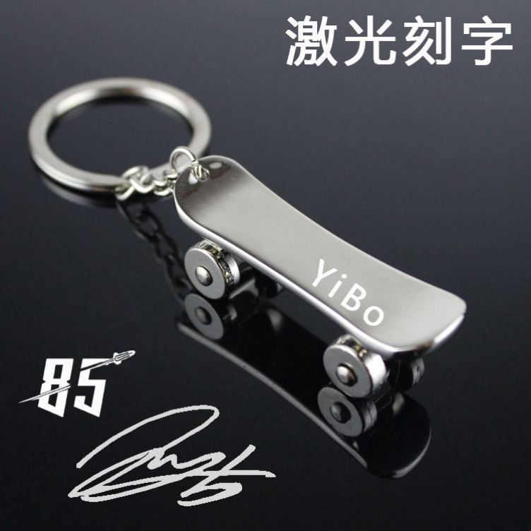 Skateboard keychain waist pendant male creative car metal key chain ring Girls day gift Laser lettering customization