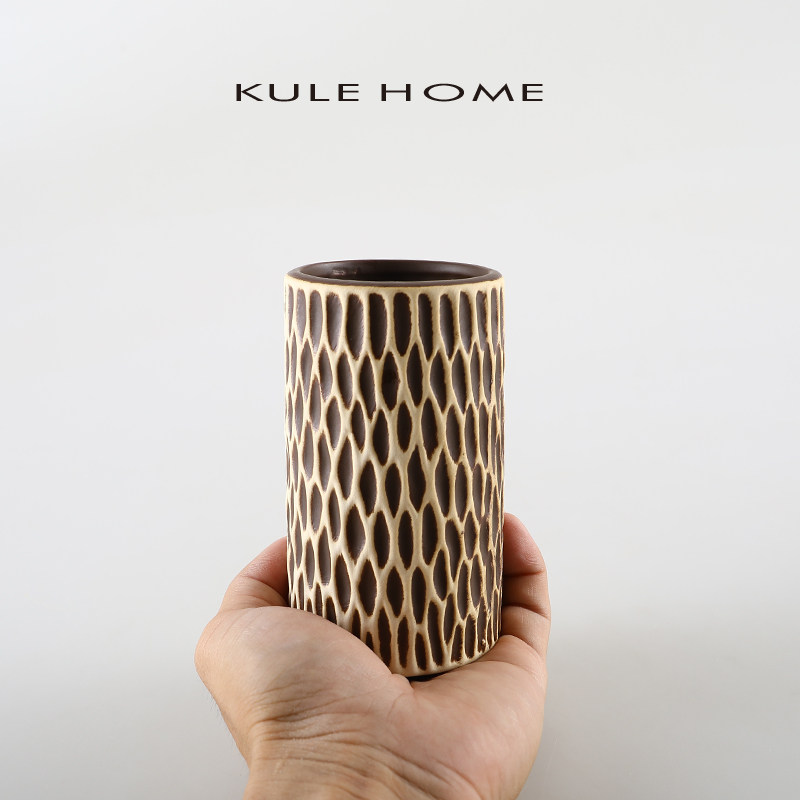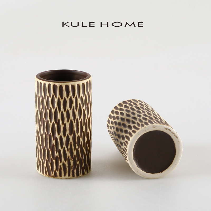 KULE HOME Ceramic Couple mouthwash cup brush cup black matte wash cup household toothbrush cup