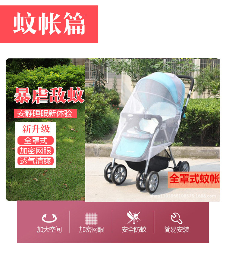Universal baby stroller Full-cover encrypted mosquito net White stroller Universal Full-cover encrypted mosquito net coffee stroller Universal Full-cover encrypted mosquito net Pink baby stroller Universal Full-cover enlarged embroidered mosquito net