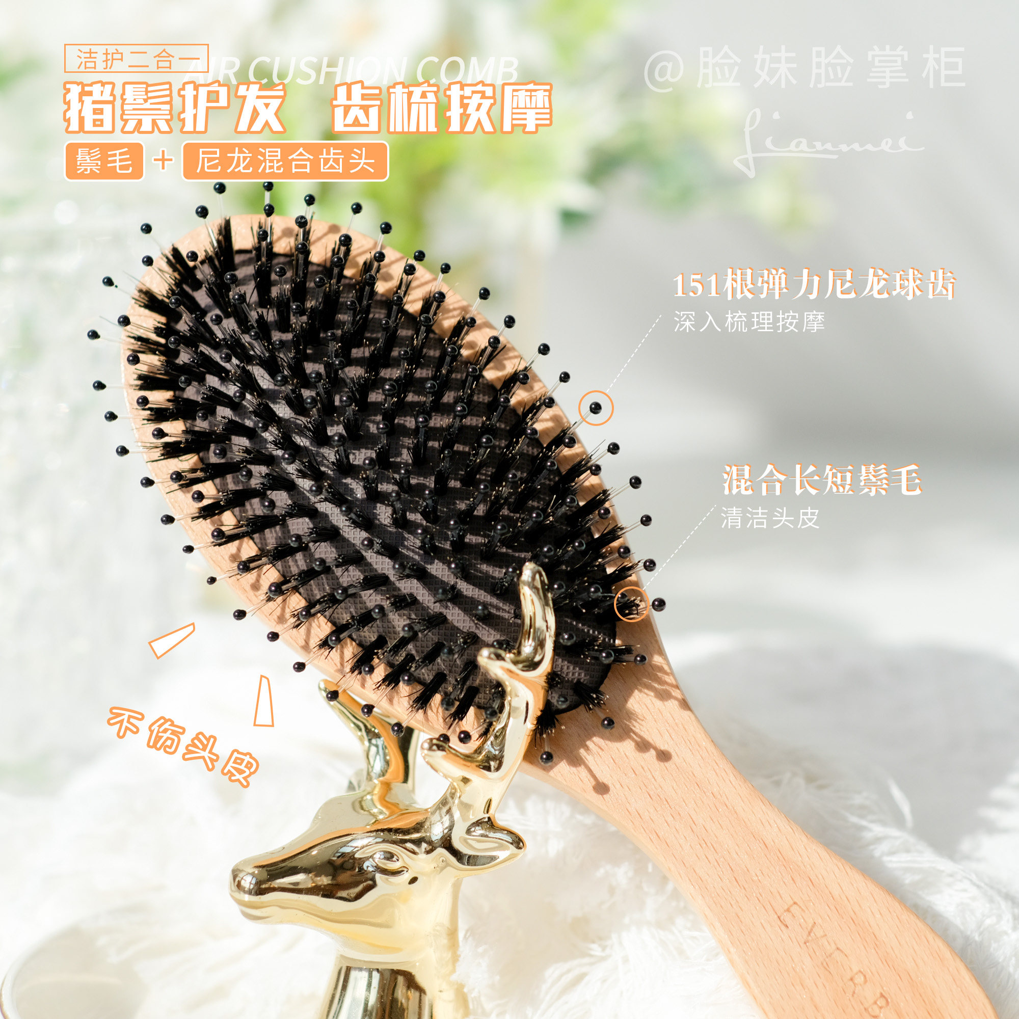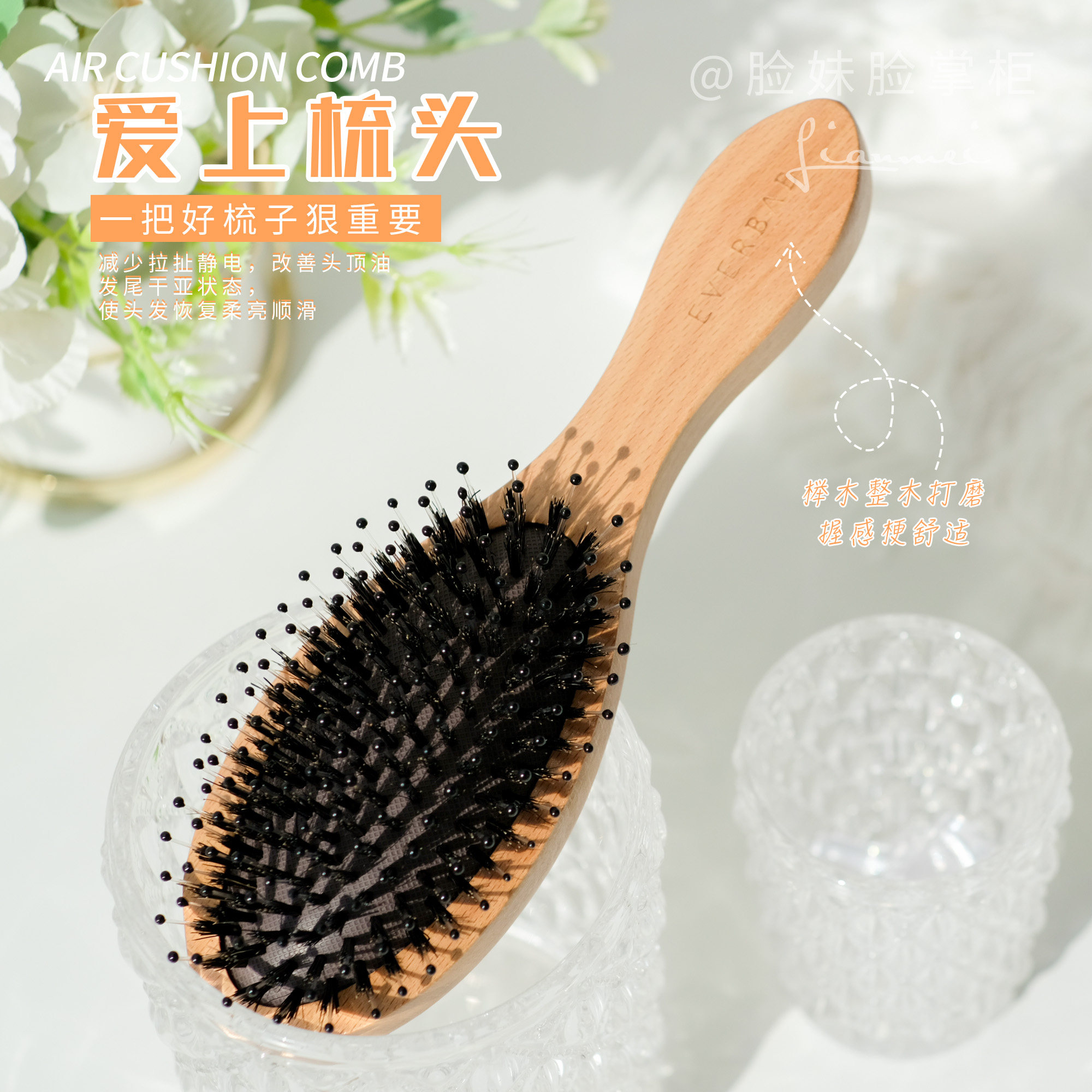 EVERBAB Abela pig bristle air cushion comb scalp massage beech wood supple non-knotted airbag