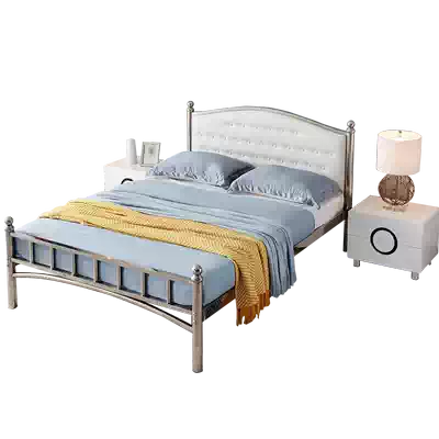 Stainless steel bed Single double bed 1 5 meters 1 8 meters Nordic light luxury princess children with soft bag 304 stainless steel bed