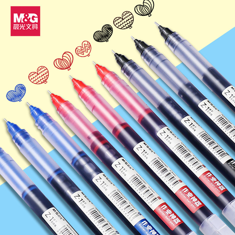 Morning light straight liquid walking pen high value color neutral pen watery pen black pen homework artifact black signature pen carbon pen red pen ballpoint straight liquid pen student with blue pen quick drying pen