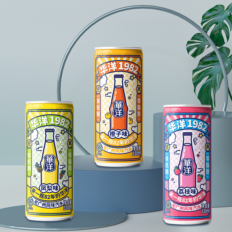 Huayang 1982 soda carbonated beverage 330ml * 24 tins full box cans drink 0 fat really low sugar