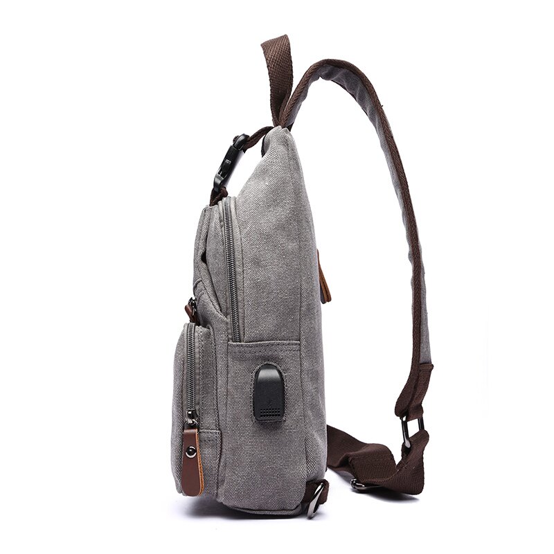 Men's casual canvas breastbag fashion new trend single shoulder-strapped bag retro-waist bag USB multi-function sports bag