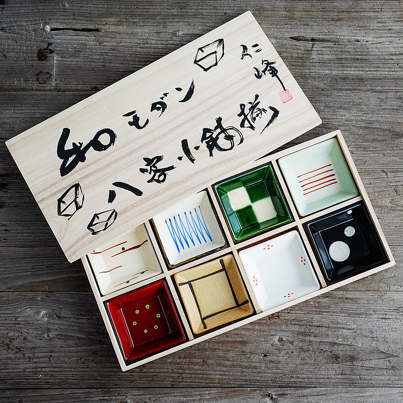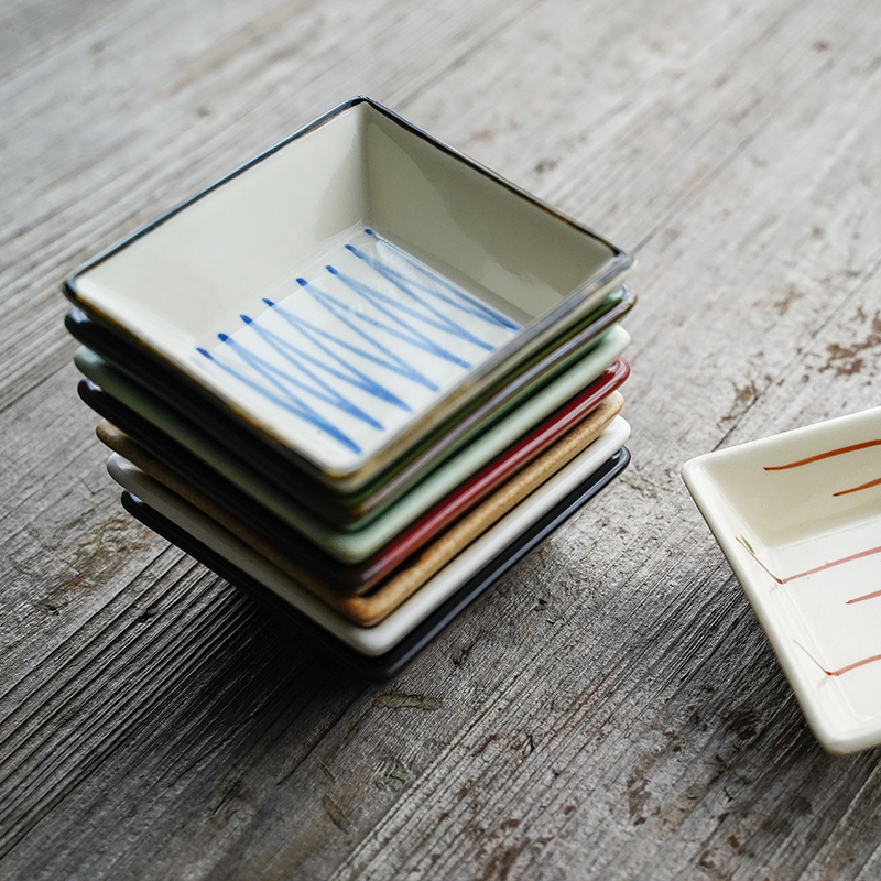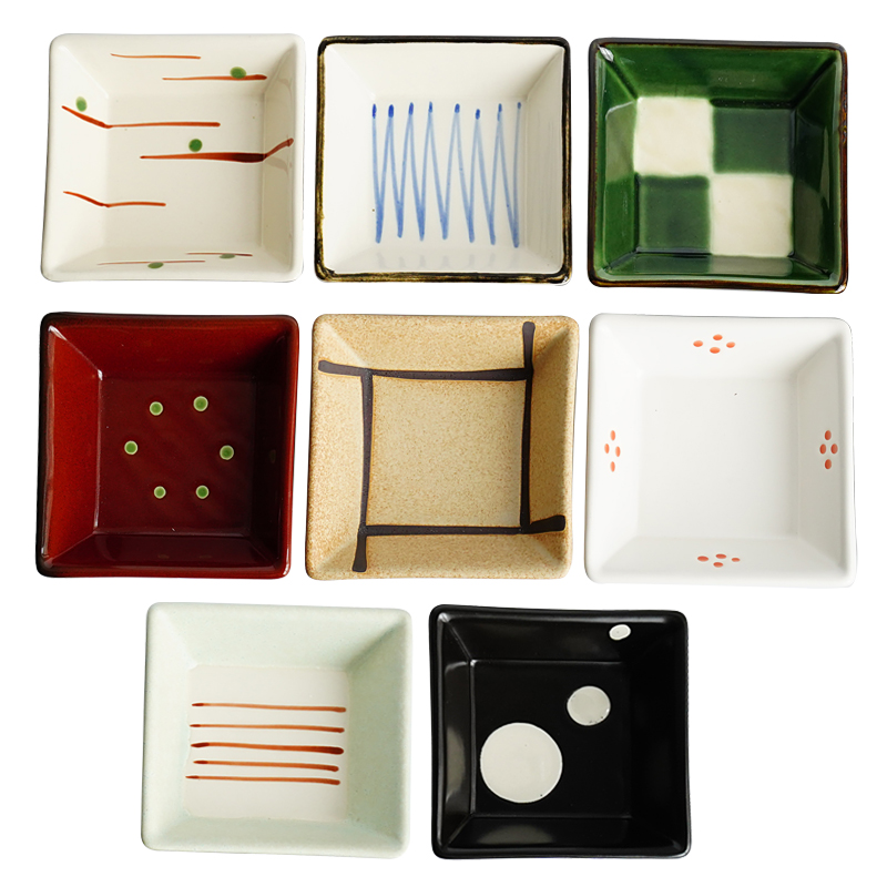 Hand-painted 8-guest gift box set imported from Japan Mino-yaki ceramic square plate Japanese-style dipping sauce soy sauce vinegar plate tableware