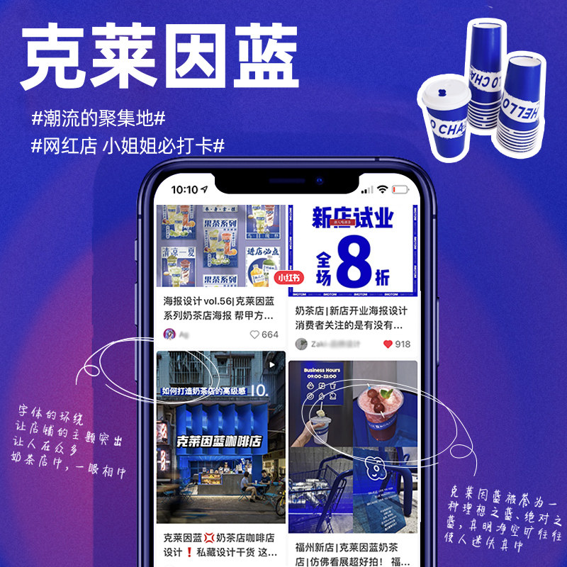 Internet celebrity Klein blue double-coated milk tea paper cup with lid commercial disposable coffee hot drink cup custom logo
