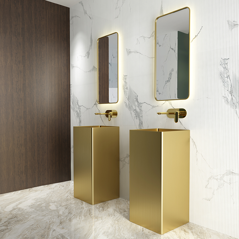 Golden single sink (delivered underwater) gold A (basin floor leader) golden B (basin round shaped into wall induction tap) gold C (basin square with wall induction tap) gold D (basin round)