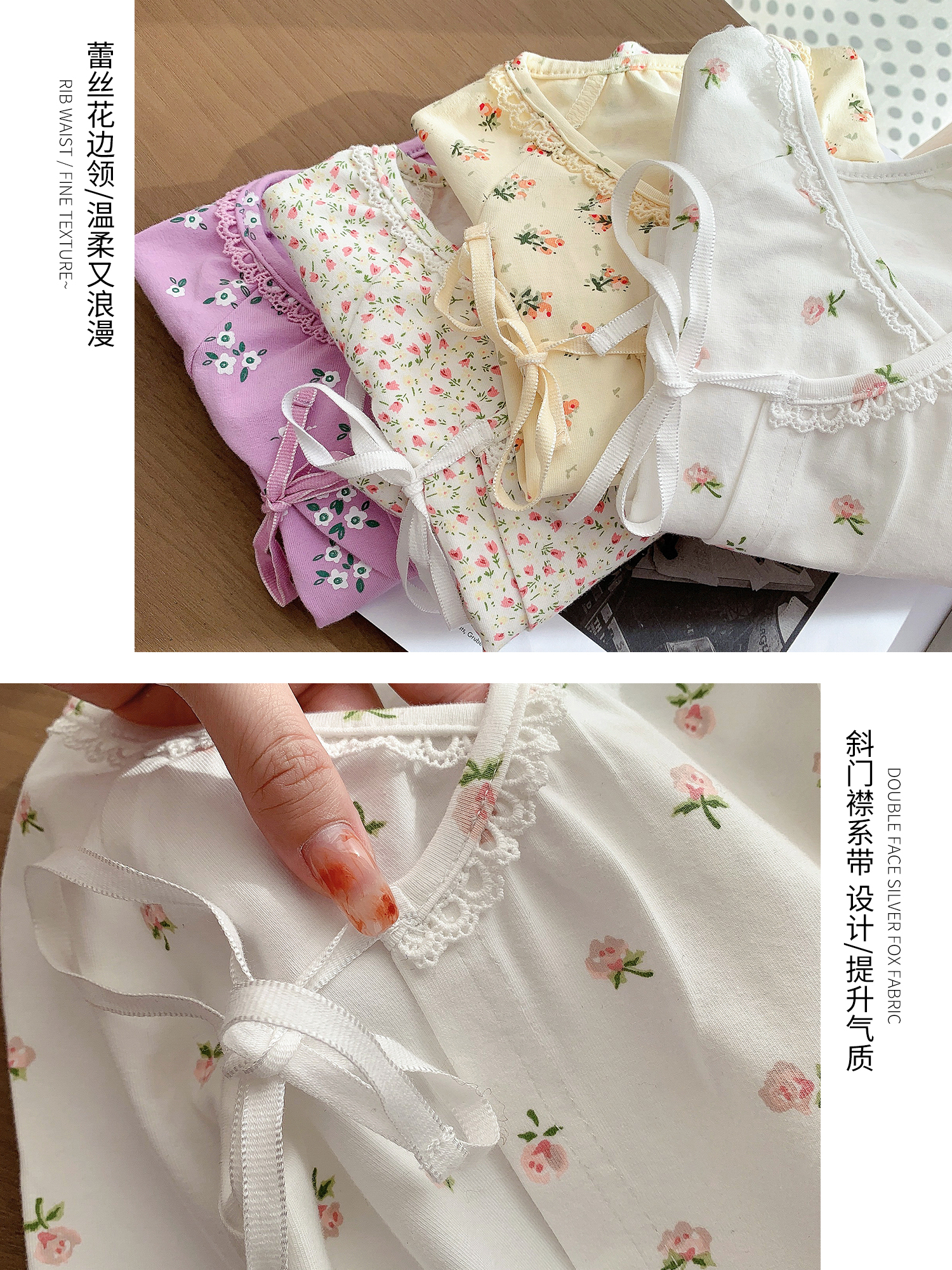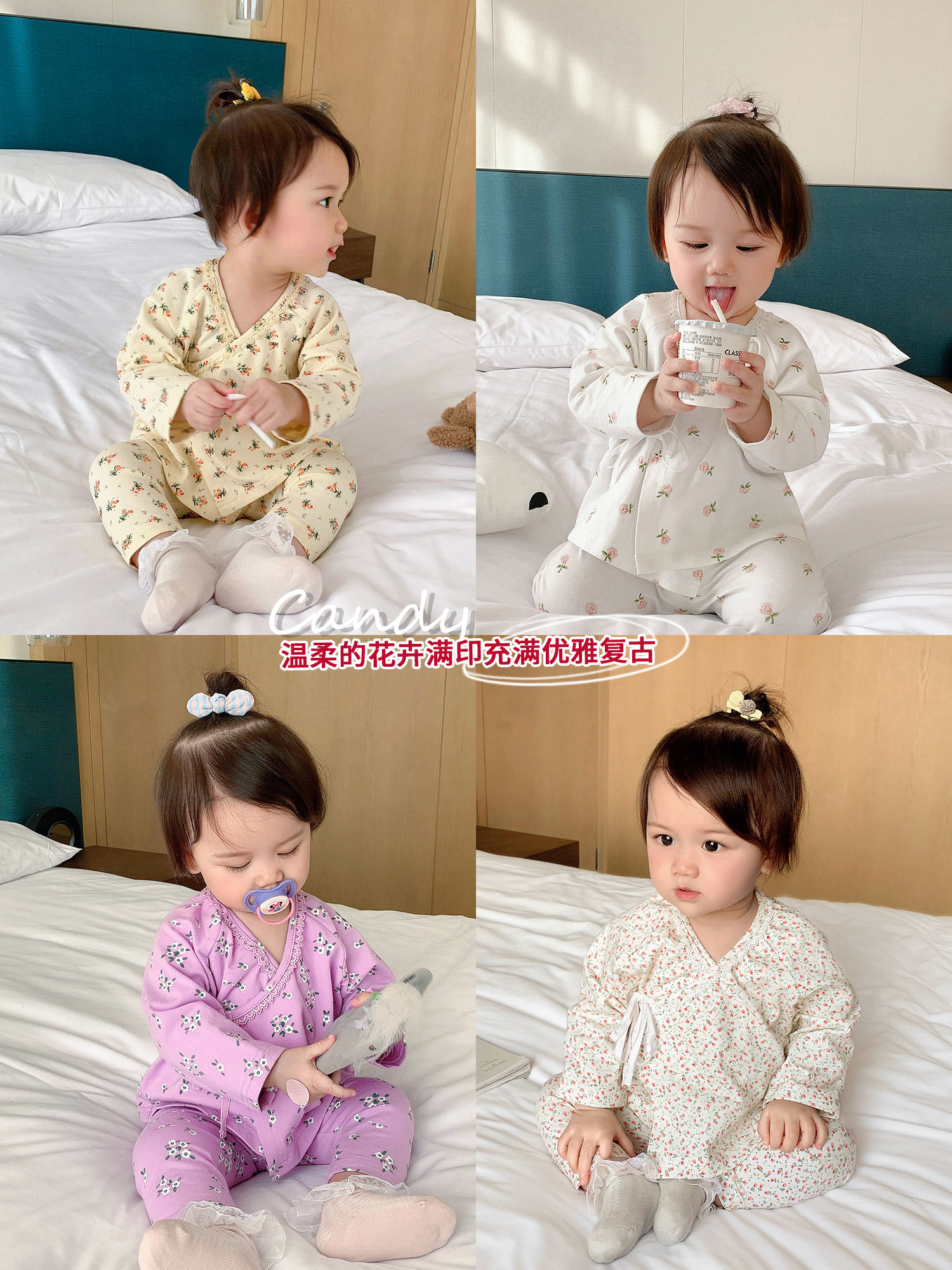 Chen Tai pig L code female baby day Broken Flowers Pyjamas Pants Sets Spring Baby Home Clothing Two Sets