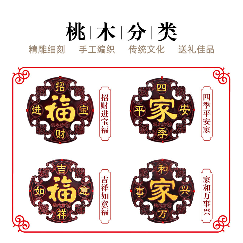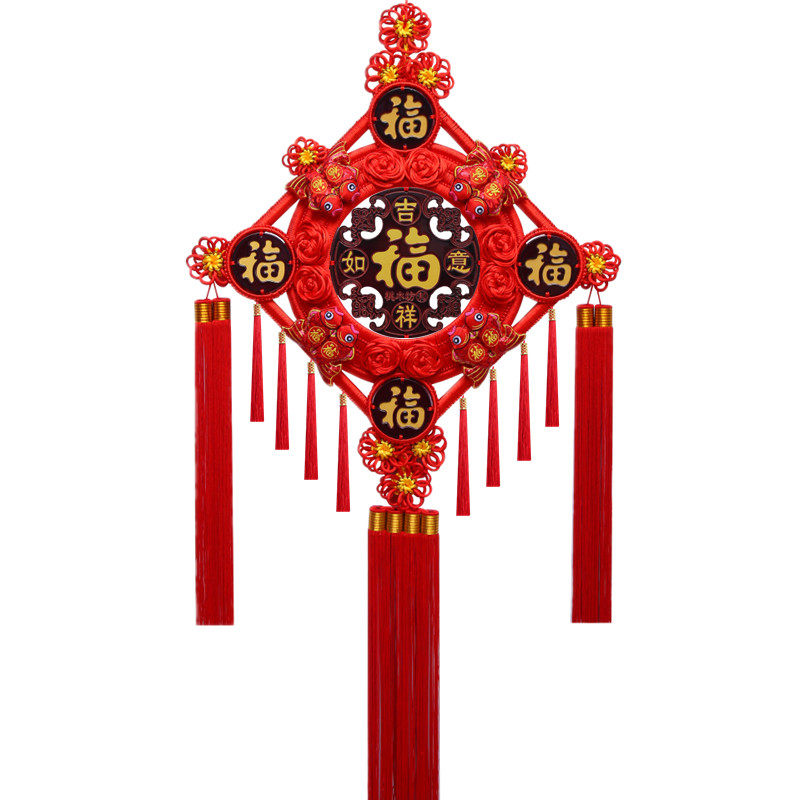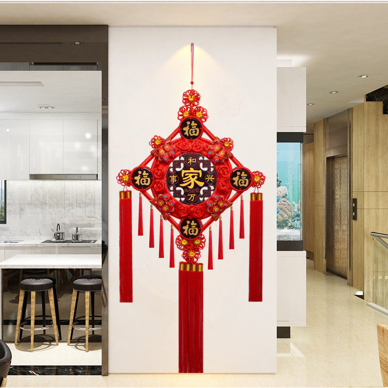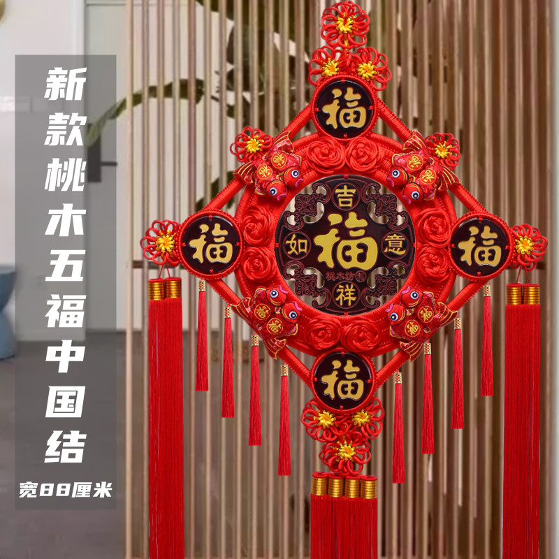 Chinese knot pendant living room large peach wood fuzian high-grade housewarming town house porch gate Ping an knot background wall door hanging decoration