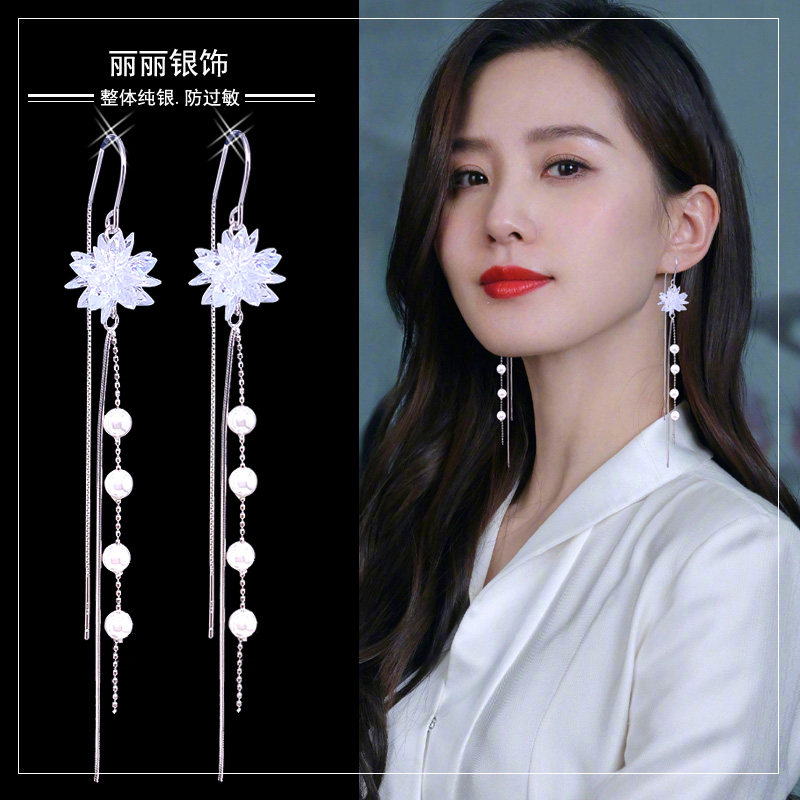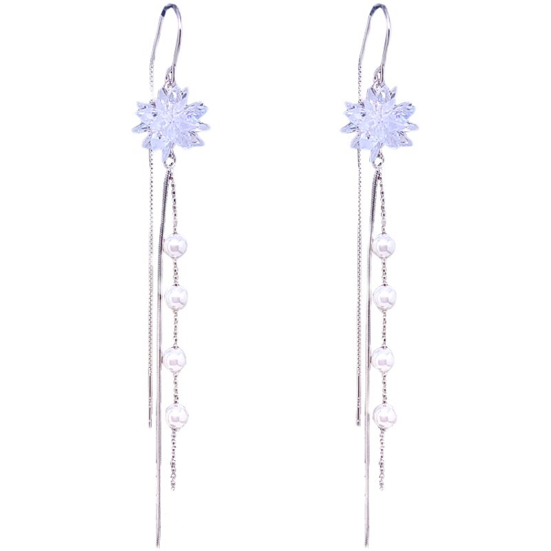 Summer tassel earrings 2021 New Tide ice crystal flower Super Fairy earrings long temperament anti-lost sterling silver ear thread