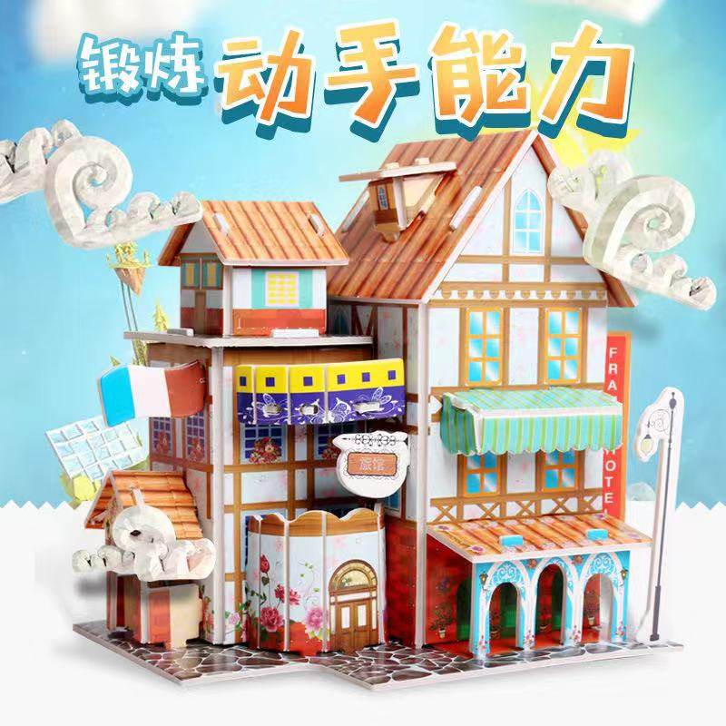 Children's puzzle three-dimensional 3d model boy and girl handmade diy house baby educational toys assembled intelligence adult