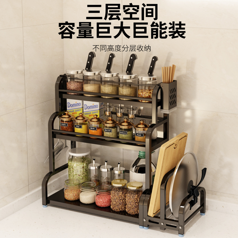 Kitchen seasoning rack multi-functional household storage rack countertop seasoning supplies stainless steel multi-layer chopsticks knife holder