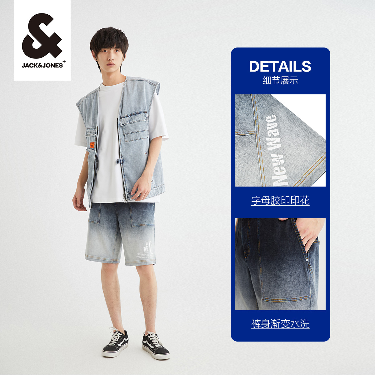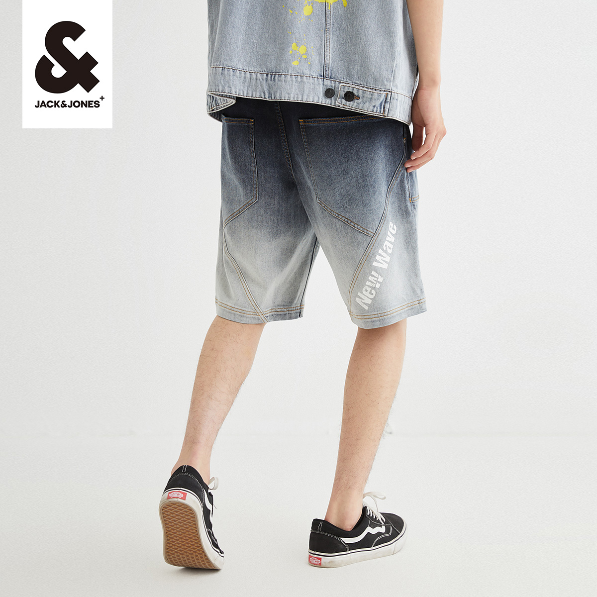 Jack Jones Jeans Men Street Personality High Street Gradual Washing Letter Printing Flash Large Jeans