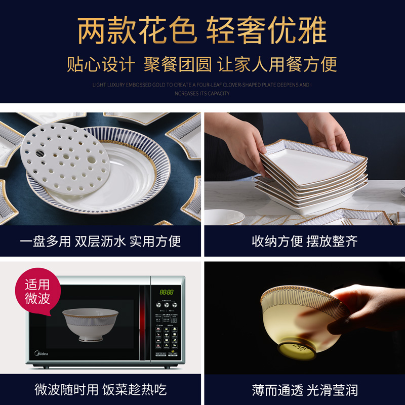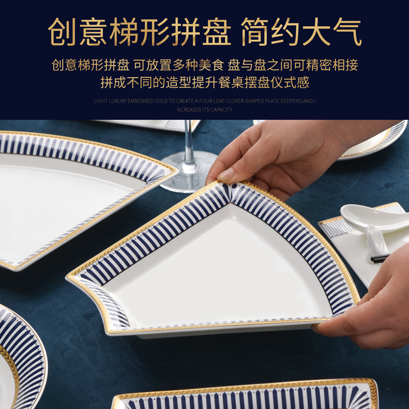 Deep Blue Love 50 Head Roundtable Bone Porcelain A Cutlery Suit Gift Box (microwave) Deep Blue Love 50 Head Roundtable Bone Porcelain B Cutlery Suit Gift Box (Microwave)