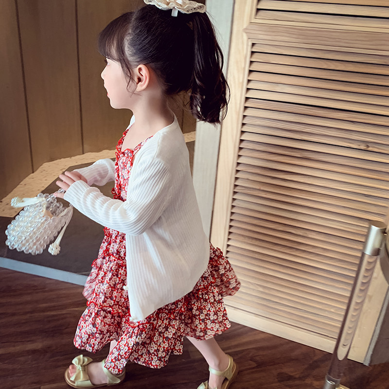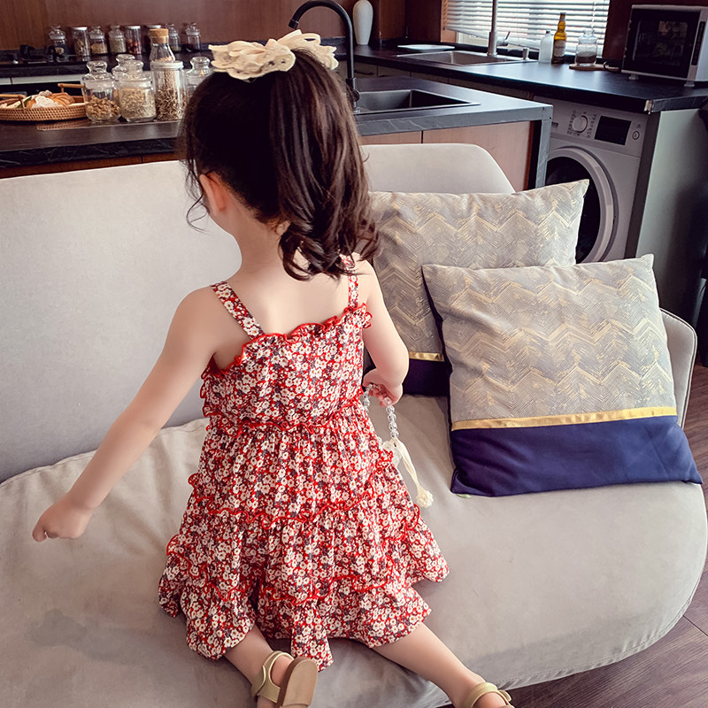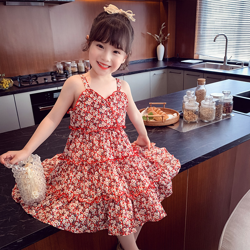Girl suspender skirt summer dress 2021 new foreign style children beach dress little girl Korean version of floral chiffon princess dress